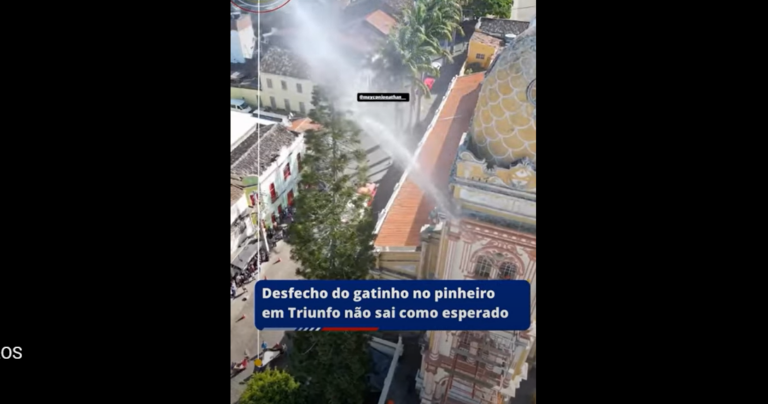 Na cidade de Triunfo, Bombeiros, com jatos de alta pressão, derrubam um felino do topo de um pinheiro, na queda o felino sofreu várias fraturas, vindo a morrer em decorrência delas.